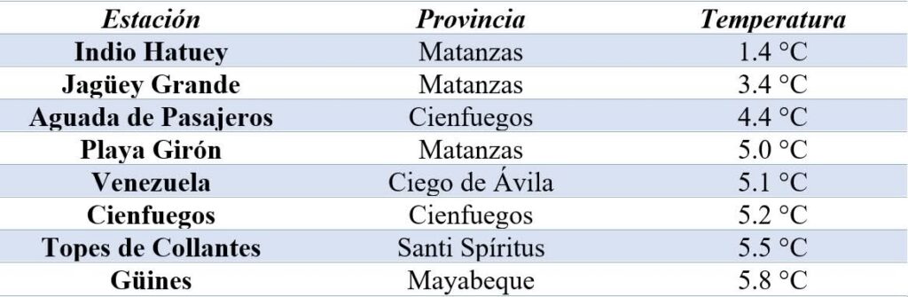 Indio Hatuey registra récord de temperatura mínima para Cuba