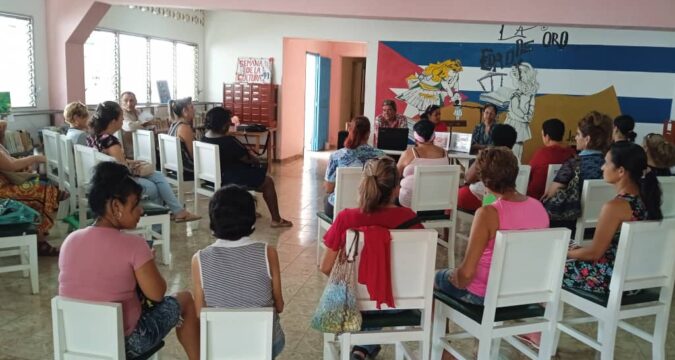 Como parte de las actividades por la semana de la cultura en Colón, los autores del libro multiformato “Cartilla de la persona cuidadora” intercambian con graduados de la escuela de personas cuidadoras y otros invitados en la biblioteca municipal Juan Marinello de la ciudad.