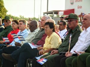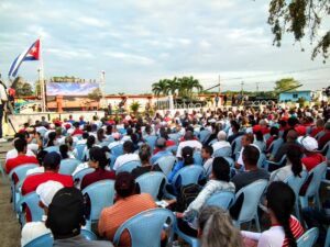 Y en esta mañana de abril, de cielo despejado y mar límpida y serena, los cenagueros colmaron nuevamente la plaza. Justo frente al Museo Memorial donde se exhiben los artefactos ocupados a la Brigada mercenaria 2506 y desde donde aparece en primer plano el Sau 100 similar a aquel desde el cual Fidel acertó un disparo contra el buque agresor Houston.