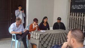 La mesa estuvo integrada por los poetas cubanos José Germán, Ricardo Riverón y Virgilio López Lemus, así como por los artistas foráneos Rolando Kattan de Honduras, Katherine Hedeen de Estados Unidos, el belga Tom van de Voorde y el cubano-americano Víctor Rodríguez Nuñez.