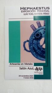 Luis Yoel Batista Pérez, en unión de otros dos artesanos, realizó su primera exposición personal con un total de quince piezas basadas en la mitología griega y confeccionadas con metales reciclados sin mucha intervención del mismo.