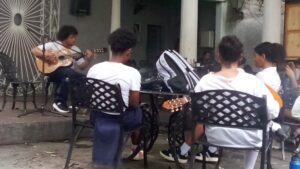 Durante el espacio El otro café, coordinado por Alfredo Zaldívar, Premio Nacional de Edición, ofrecieron su música estudiantes de la Escuela Profesional de Arte. Hubo un momento dedicado a la promoción literaria por especialistas de la librería La calle de Rimbaud, en este caso del volumen La culpa es de Michael Jackson, de Daneris Fernández Fonseca, publicado bajo el sello de Ediciones Matanzas.