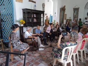 Entre los asistentes se encontraban Noslén González, subdirector provincial de Cultura; Efrahim Pérez Izquierdo, director del Centro provincial del Libro y la Literatura; Marcia Brito, directora del Museo Farmacéutico; la destacada profesora Leonor Vergara y la poeta Mae Roque, junto a la editora y fundadora de Vigía, la poetisa y ensayista Laura Ruíz, Premio Nacional de Traducción, y muchos integrantes del colectivo que durante años han iluminado las creaciones de artistas del diseño de los libros arte como Rolando Estévez Jordán, Marialba Ríos y Adrián Gómez Sancho, quien donó una de sus obras, realizadas ‘in situ’, motivado por la celebración.