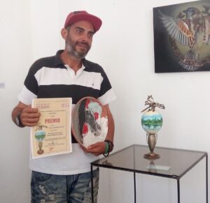 “De hecho su primer premio fue para una obra de talla madera que salta de lo monolítico a lo instalativo y que, de esa misma forma, también respira, por ejemplo, con fotografías, con una obra plástica condicionada por la comparación entre el arte matérico y el arte natural”, comentó Antonio Enrique Pérez Marrero, presidente de la filial matancera de la ACAA.