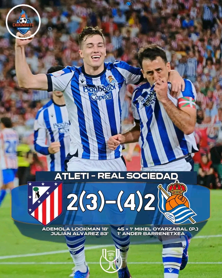 La Real Sociedad de San Sebastián derrotó hoy en tanda de penales al Atlético de Madrid con una soberbia actuación del arquero Unai Marrero para coronarse campeones de la Copa del Rey.