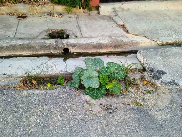 Transitando por la calle Navarro y la calzada del Naranjal, en la ciudad de Matanzas, observé una mata de calabaza hermosa y llena de vitalidad. Estaba en un hueco de la calle, cerca del contén, en un lugar donde los vehículos no la afectaban. Esto me hizo reflexionar sobre lo inconcebible de su alto precio actual.